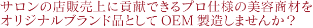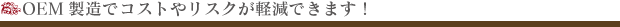 | OEMとは、Original Equipment Manufacturerの略で、相手先ブランドでの販売を目的とした製造のことをいいます。ゼロから新規開発するよりも、他社が開発して市場で販売実績がある製品を一部変更し、自社のブランドとして販売することで、開発コストやリスクを大幅に軽減することができるのです。当社なら、小ロットで製造ができますので、仕入コストのダウンにも繋がります。 |
